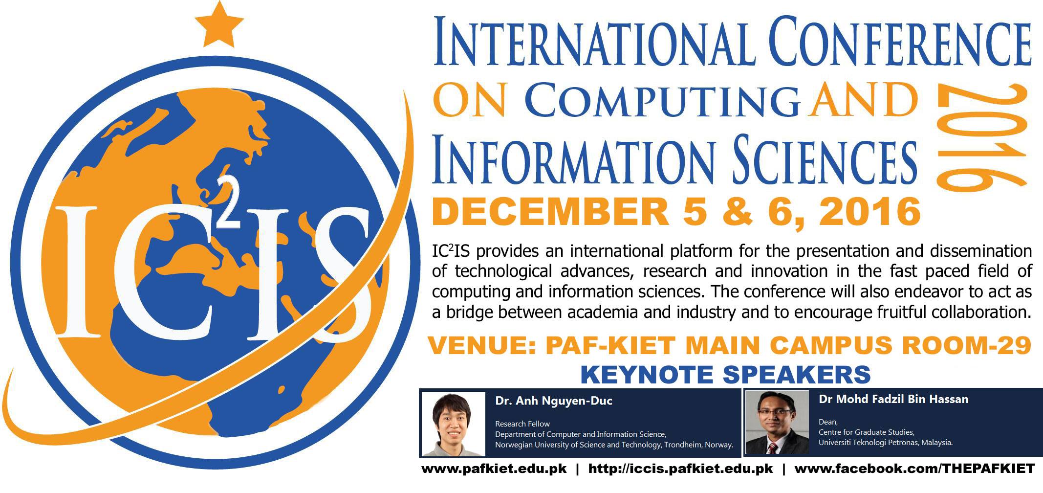 KIET College Of Computing & Information Science – CoCIS is going hold its maiden International Conference named as “International Conference on Computing & Information Sciences – ICCIS 2016” from 5 to 6 December, 2016 at Main Campus. IC²IS will provide an international platform for the presentation and dissemination of technological advances, research and innovation in the fast paced field of computing and information sciences. IC2IS 2016 aims to provide a forum to present new research problems and recent results of the emerging technologies in this exciting discipline. The conference will also endeavor to act as a bridge between academia and industry and to encourage fruitful collaboration. It will bring together researchers, faculty members, consultants, industry experts and technologist on one platform.